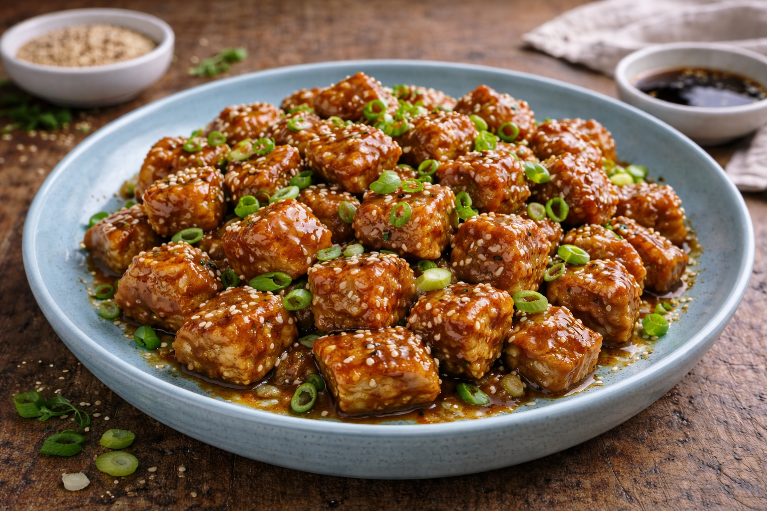 I bocconcini di seitan glassati al sesamo sono una proposta gustosa e moderna: la glassa lucida avvolge ogni pezzo regalando sapori dolci, salati e leggermente tostati dal sesamo.