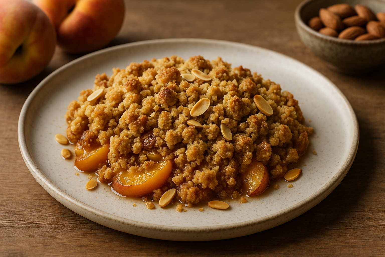 Taglia le pesche a spicchi regolari e mettile in una ciotola. Aggiungi il succo di limone, lo zucchero di canna, la cannella e l'amido di mais. Mescola delicatamente in modo che gli spicchi siano ben ricoperti e lascia insaporire per qualche minuto.