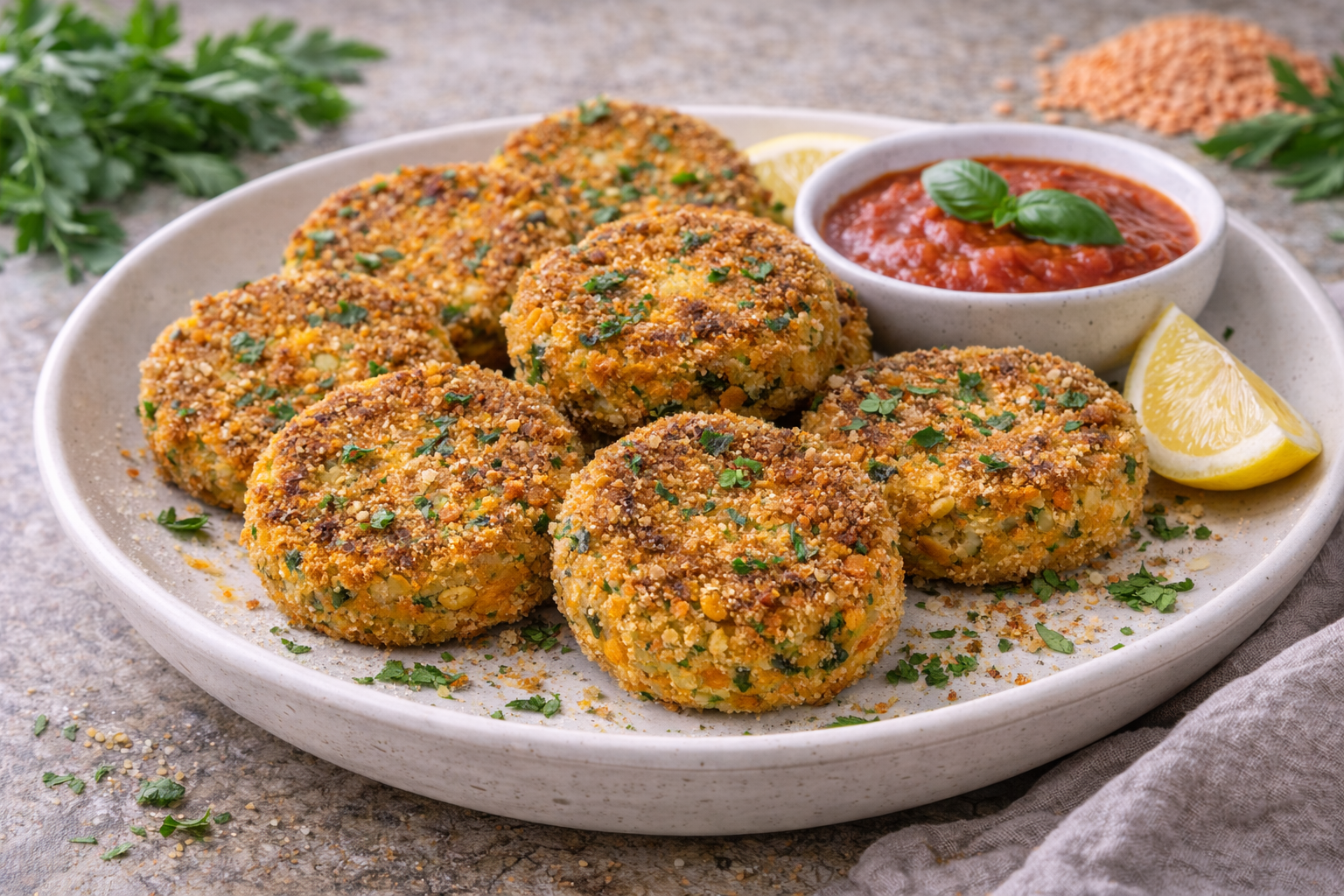 Sciacqua le lenticchie rosse sotto acqua corrente, poi cuocile in acqua leggermente salata fino a che diventano morbide e si disfano facilmente. Scola bene e lascia intiepidire su una teglia in modo che perdano l'umidità in eccesso.