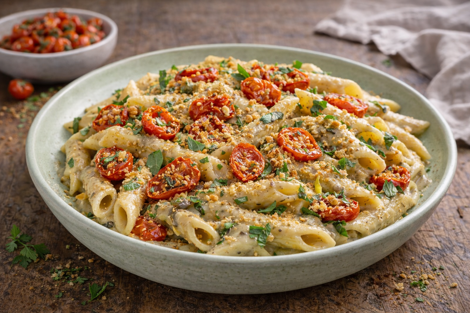 Taglia i pomodorini a metà, disponili su una teglia con la parte tagliata verso l'alto. Condiscili con olio, sale, pepe e qualche foglia di timo o origano. Cuoci a bassa temperatura fino a quando saranno rugosi e leggermente caramellati.